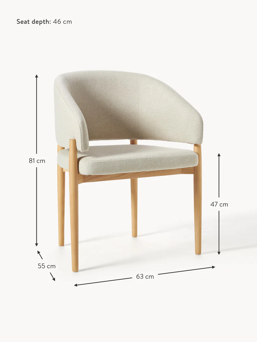 De gestoffeerde armleunstoel LUMO is het toppunt van stijl en comfort. Met zijn elegante rondingen en zachte bekleding is hij niet alleen buitengewoon comfortabel, maar ook een subtiele blikvanger. Of je hem nu plaatst in de eetkamer, werkkamer of woonkamer – LUMO past perfect bij elk interieur en geeft net dat beetje extra. De warme houttinten en het verfijnde design maken het gegarandeerd tot je nieuwe favoriete zitplek in huis.
