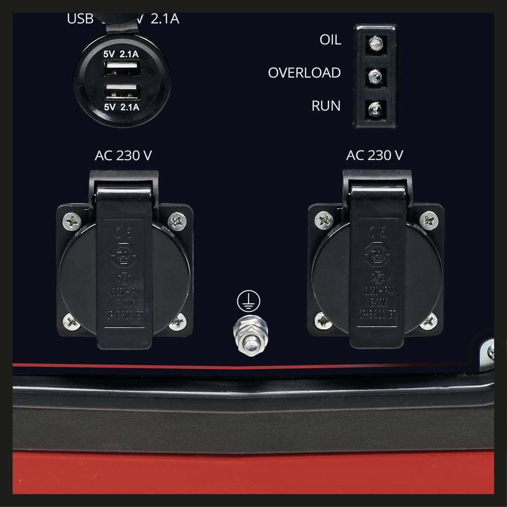 De stroomgenerator (benzine) TC-IG 2000 is ideaal overal waar onafhankelijke stroomopwekking nodig is: In volkstuinen, op bouwplaatsen, op de camping, in werkplaatsen, garages of ook voor vakantie in vrijstaande gebouwen en in bos-, vissers- en berghuizen. De stroomgenerator wordt aangedreven met een krachtige, robuuste en emissiearme 4-takt aandrijfmotor met inverter-technologie, voor stroomuitvoer zonder spanningspieken. Zo kunnen ook gevoelige apparaten worden aangesloten en gebruikt. Bij continu vermogen geeft de stroomgenerator continu 1800 watt af, het maximale vermogen bedraagt 2000 watt. De stroom wordt geleverd via twee 230 volt stopcontacten, waarop elk apparaat kan worden aangesloten. Bovendien beschikt de stroomgenerator over twee USB-aansluitingen. De gesloten constructie zorgt voor een stille werking. De stroomgenerator is bovendien beveiligd door een overbelastingsschakelaar en de olieslechte zekering. De stroomgenerator wordt zeer eenvoudig gestart door middel van een kabel, de draaggreep zorgt voor een eenvoudig transport.