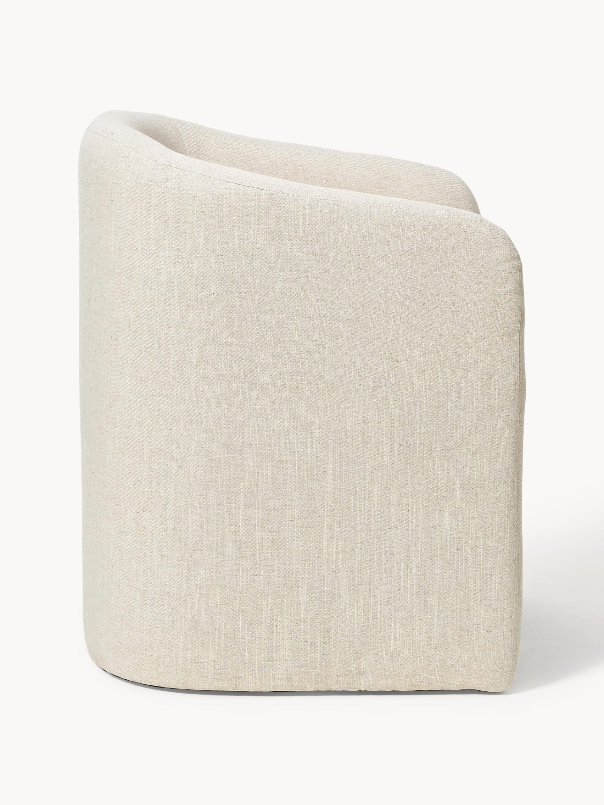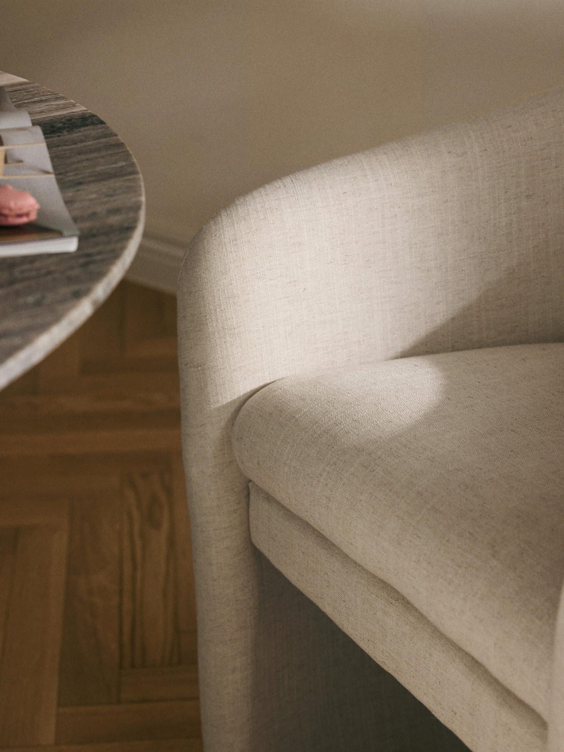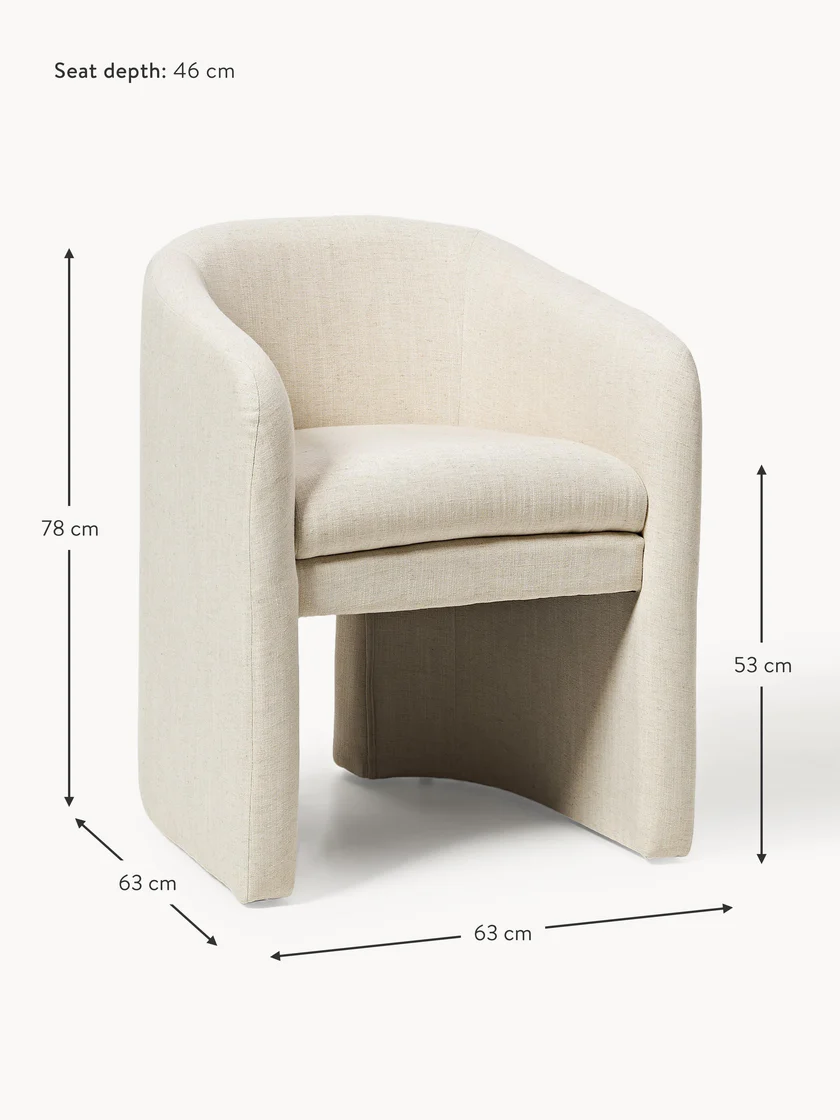 Met zijn uitnodigende vorm en zachte armleuningen wordt de SANTO armstoel al snel jouw favoriete plek in huis om te ontspannen. De lichtbeige bekleding en het moderne design zorgen voor een warme, rustige uitstraling in elke ruimte.