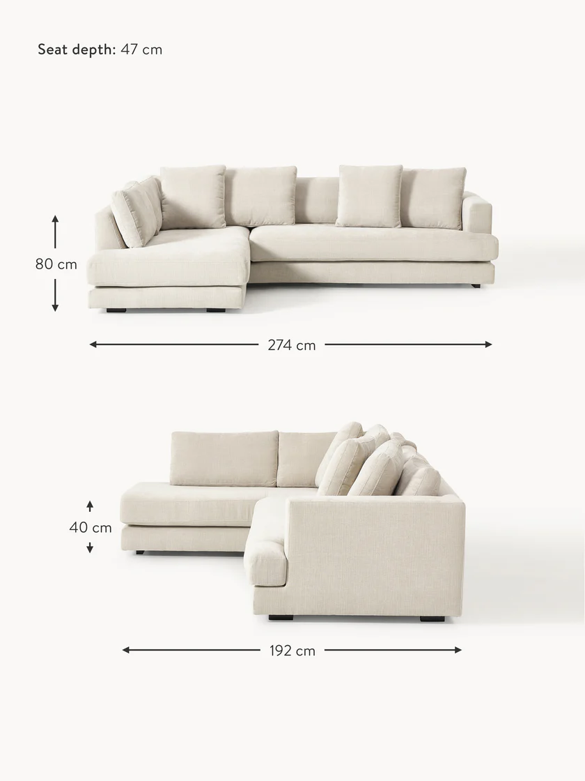 Totaal: B 274 cm, H 80 cm, D 192 cm Zitvlak elementen: B 160 cm, H 40 cm