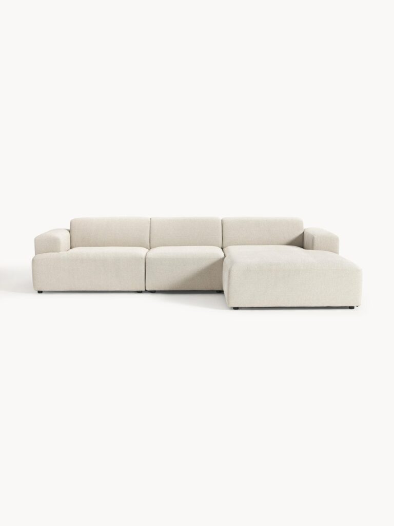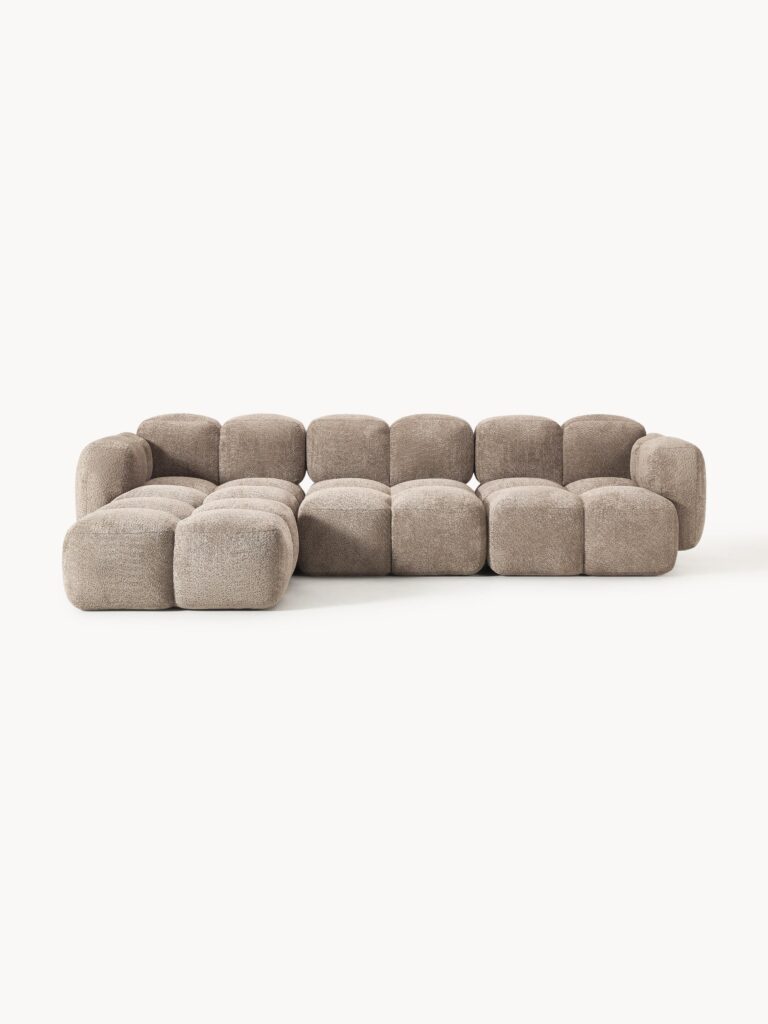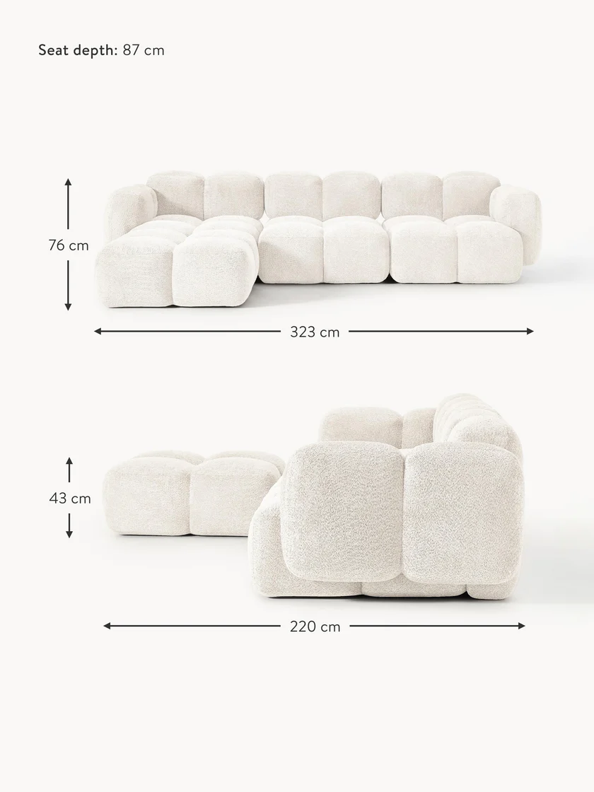 Modulaire bank Norelle (4-zits) van teddy bouclé met poef (links/rechts)