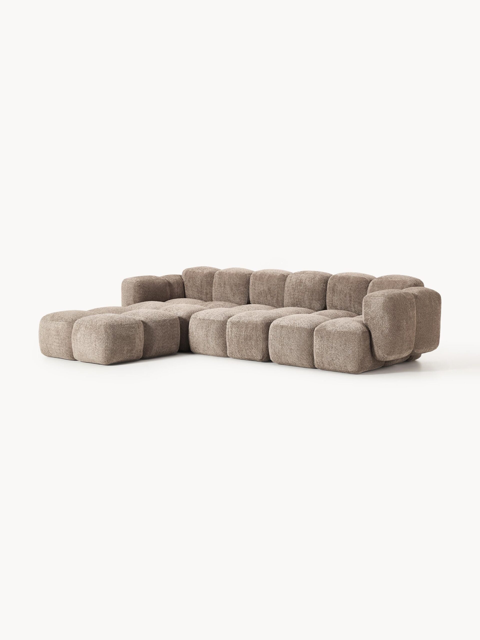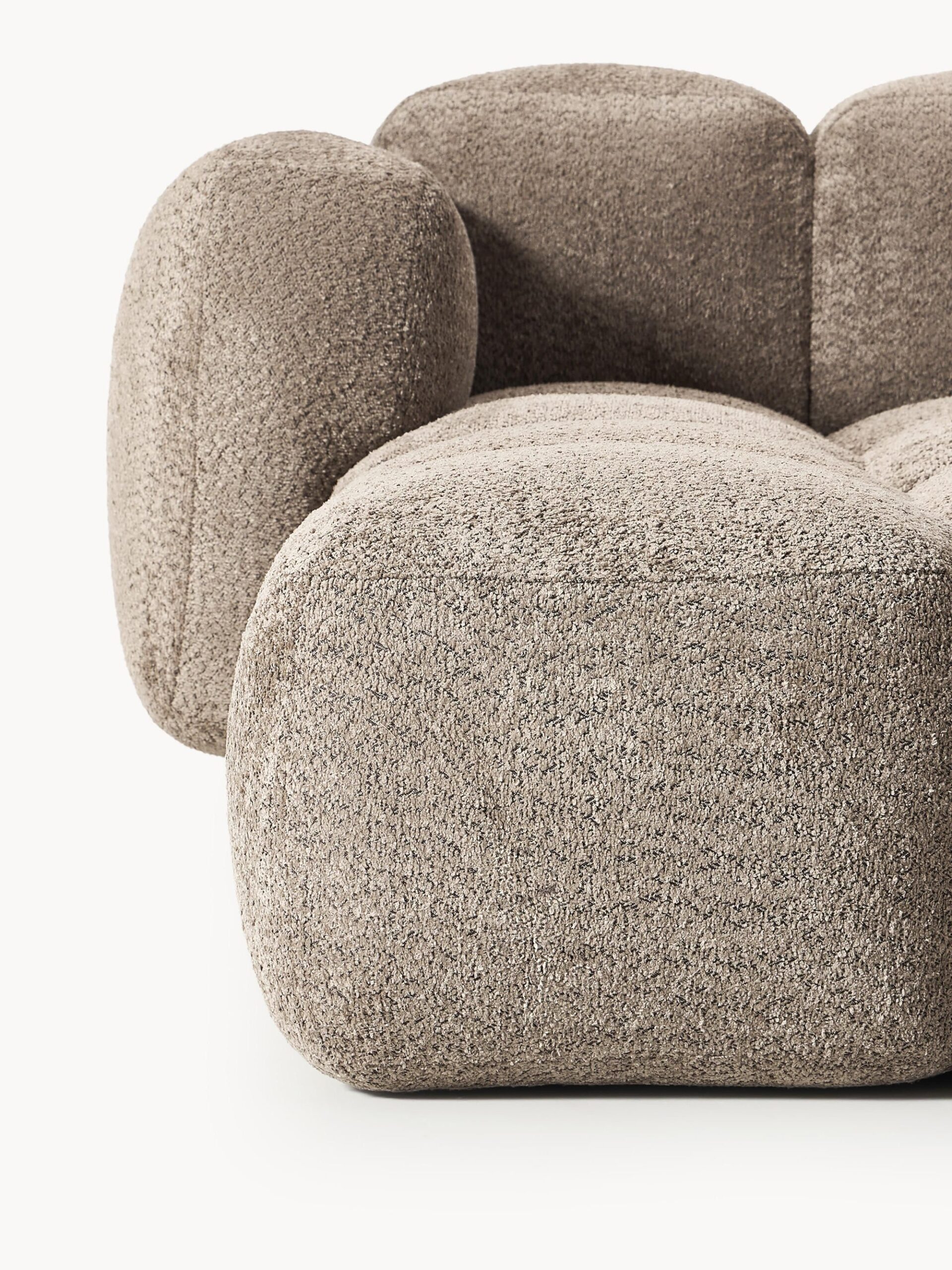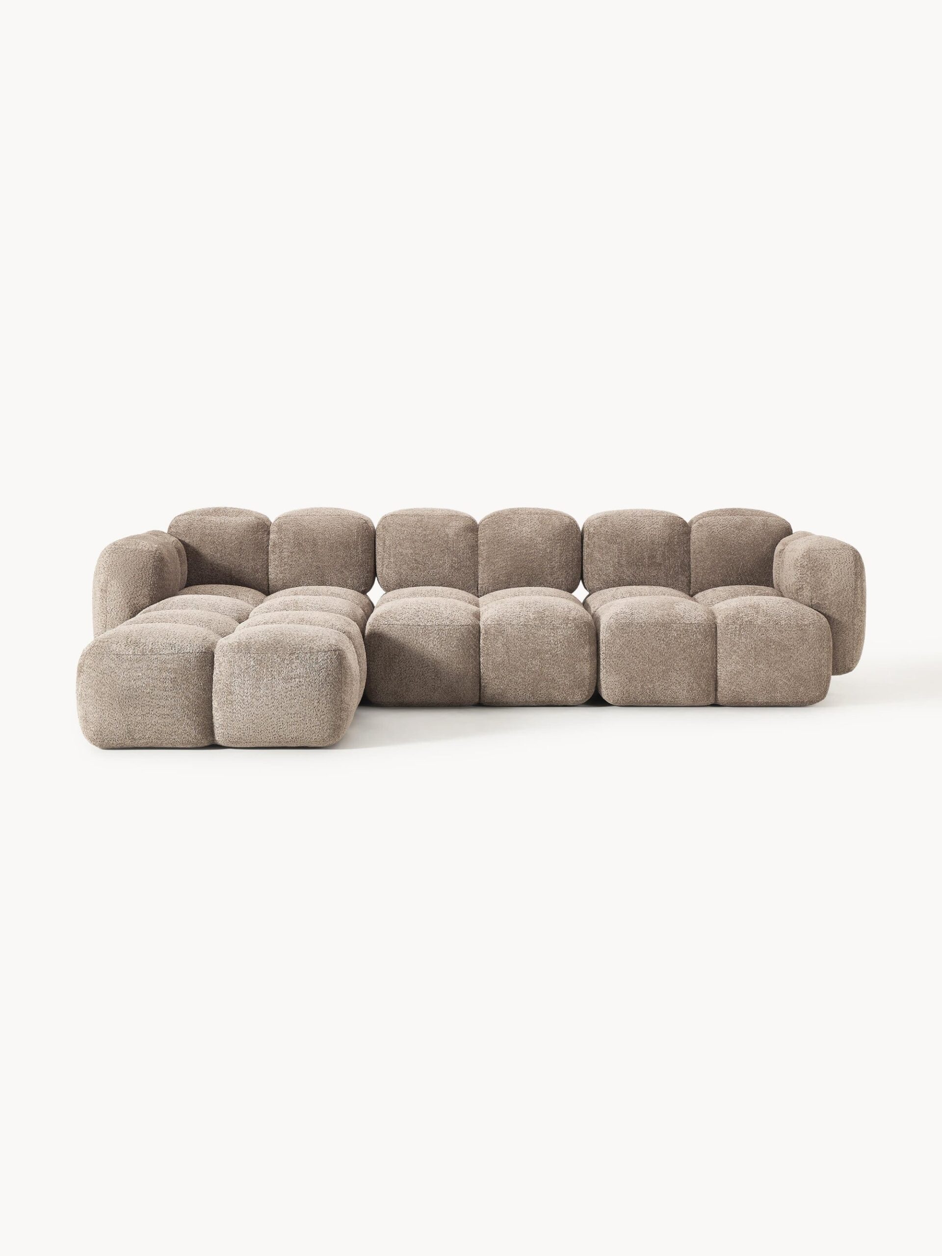 Modulaire bank LIVIENNE (4-zits) van teddy bouclé met poef (links/rechts)